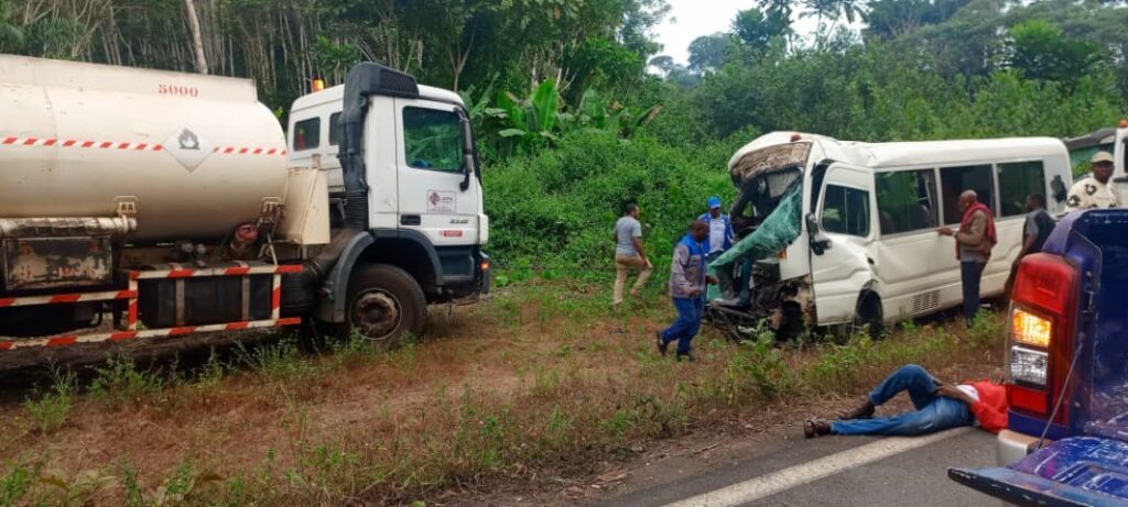 Un grave accident de la circulation s’est produit ce matin à quelques kilomètres de la ville de Fougamou, dans le centre du Gabon. Un camion est entré en collision avec un minibus de type Coster, appartenant à une agence de voyage et en provenance de Mouila. Le choc, particulièrement violent, a immobilisé les deux véhicules sur la chaussée, provoquant un vif émoi parmi les riverains et les premiers témoins.