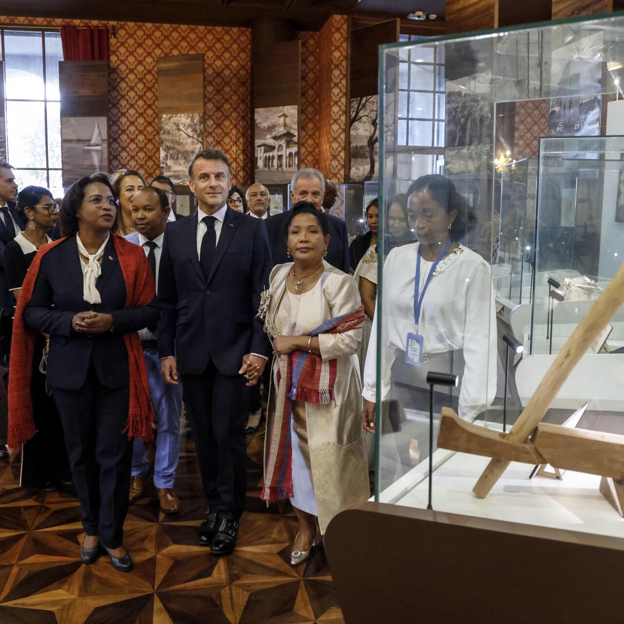 Initialement prévue pendant la visite, la restitution symbolique de crânes Sakalava, dont celui présumé du roi Toera, a été repoussée en août, en raison de divergences entre les descendants royaux et le calendrier coutumier. Emmanuel Macron a tout de même salué ce geste à venir comme une « première étape » vers la réconciliation.