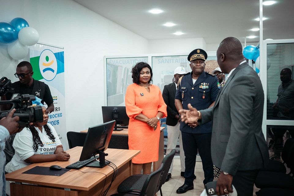 Madame Nadia Christelle Koye, DG de la CNAMGS accompagnée du Délégué Spécial de la Commune d’Owendo, lors de la visite des locaux.