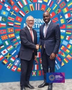 Au cours de ces entretiens, Mark Alexandre Doumba a eu l’honneur de s’entretenir avec plusieurs personnalités majeures du monde financier, parmi lesquelles Nigel Clark, Directeur Général Adjoint du FMI, Ousmane Diagana, Vice-Président de la Banque mondiale pour l’Afrique de l’Ouest et du Centre, Abebe Aemro Selassie, Directeur du Département Afrique du FMI, et Ethiopis Tafara, Vice-Président de la Société Financière Internationale (SFI) pour l’Afrique.